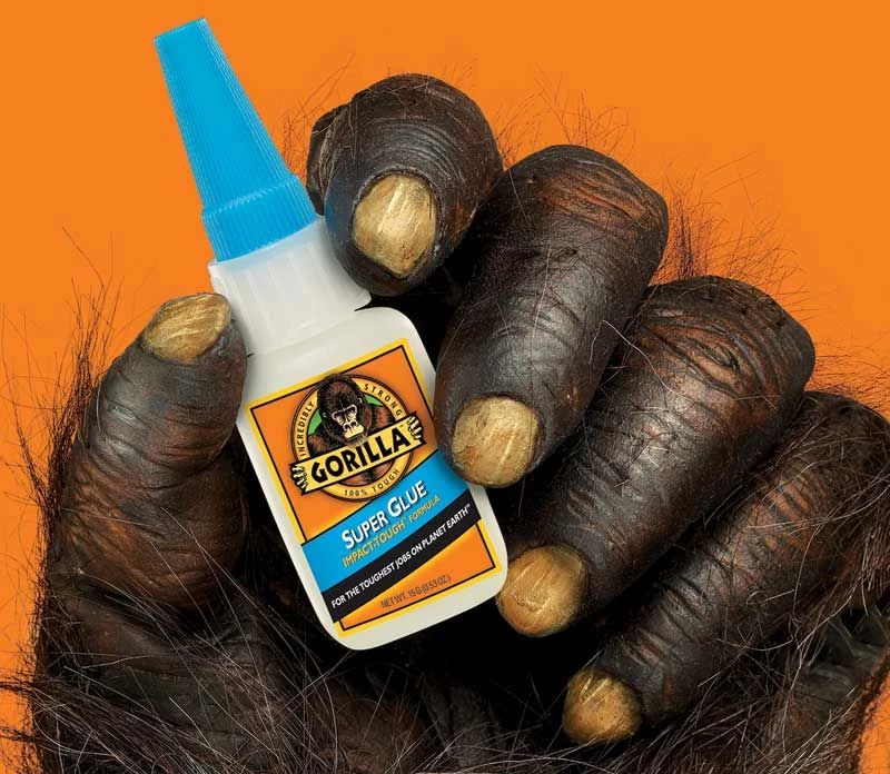 - You asked for it. Or maybe secretly wished for it. And now it’s here. Introducing new Gorilla™ Super Glue, the first super glue that keeps holding strong, even when the bond takes a hit–we call it our Impact-Tough™ Formula. Just hold in place for 30-60 seconds while the formula sets, no clamping necessary. It’s what makes Gorilla™ Super Glue, so, well, super.